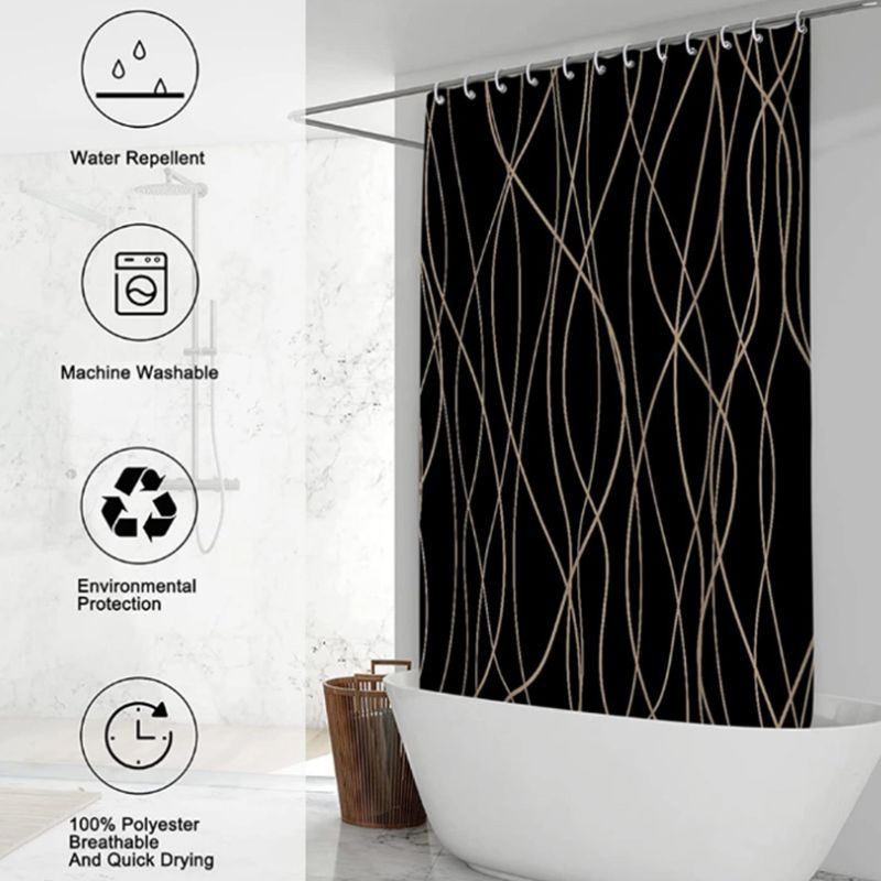 Our modern-style shower curtain is more than just a functional item; its a statement piece that elevates your bathroom decor. The timeless black and white palette ensures it will complement any color scheme, while the striped pattern adds a dynamic touch to your space.