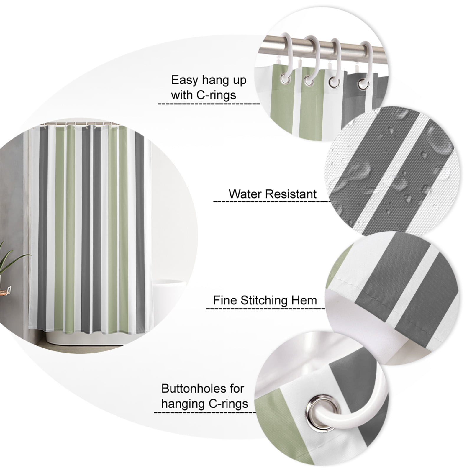 Designed with contemporary style in mind, our grey and green shower curtain adds a touch of modern sophistication to your space. The soothing color palette and nature-inspired pattern create a versatile look that seamlessly complements various aesthetic styles.